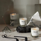 The beauty of lighting a candle is in the senses it awakens—the meditative site, the transportive smell. The candles honor the ritual of taking match to wick with scents made for slowing down. Responsibly made of blended natural essential oils and topped with a cotton wick for clean burning.