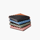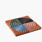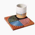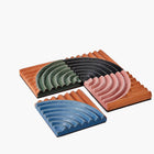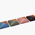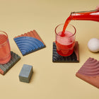A set of four terracotta coasters reminiscent of the rippled sand dunes in the American southwest. Their ridged design keeps your favorite drinks steady and surfaces protected. Arrange all four together to make a trivet for your kitchen or tabletop.