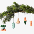 Pat Kim’s wooden ornaments are small, colorful forms adapted from larger scale designs found in his work. Keeping different arrangements of them around his studio, they often act as inspiration for new design ideas. This set of six ornaments is a fun reflection of Kim's broader studio practice, which focuses on material experimentation and traditional craft. Hang them here or there for festive decor, or as objects of celebration in your own space.