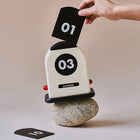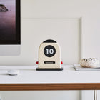A perpetual calendar disguised as a playful desktop object. Rotate the red knobs to adjust the month, and slide in the numbered cards to complete the date — a tactile ritual that brings rhythm to your day. With its soft geometry, cream-and-black contrast, and a dash of red, the design pays homage to retro flip calendars while feeling distinctly contemporary. Equal parts tool and sculpture, it invites pause, interaction, and a sense of time made visible.